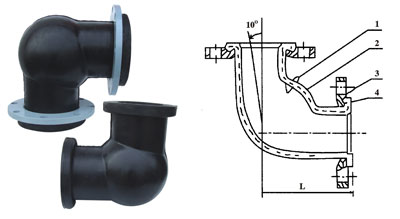 可曲撓橡膠彎頭,簡(jiǎn)稱橡膠彎頭,是由織物增強(qiáng)的橡膠件與平形活接頭、松套金屬法蘭或螺紋管法蘭組成,用于管道隔振降噪、補(bǔ)償位移的彎頭。